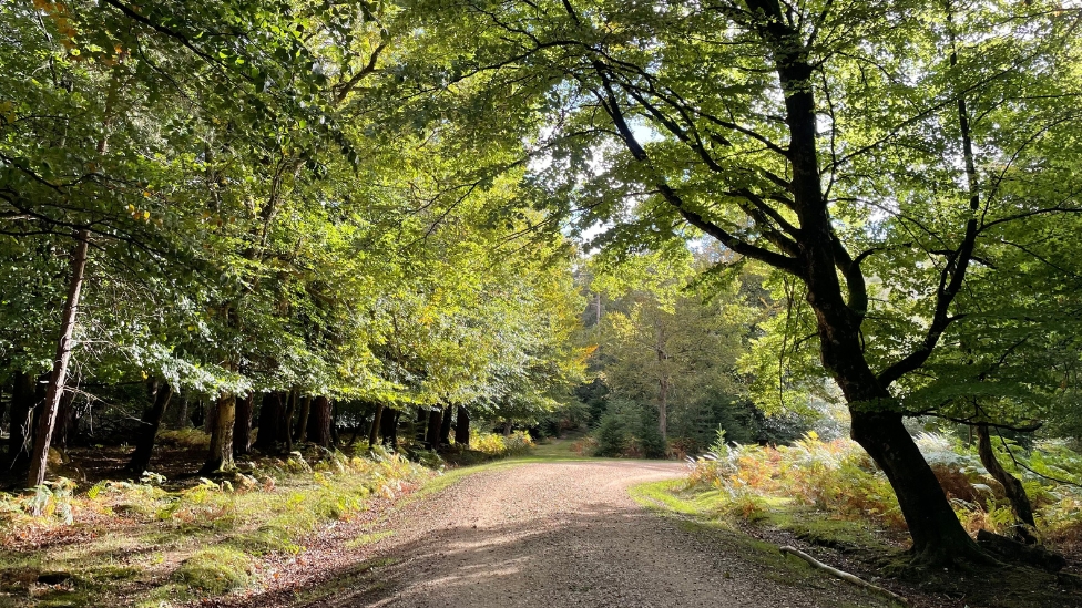 Follow the forest track until it meets the New Forest cycle network path. Turn left onto the cycle path.